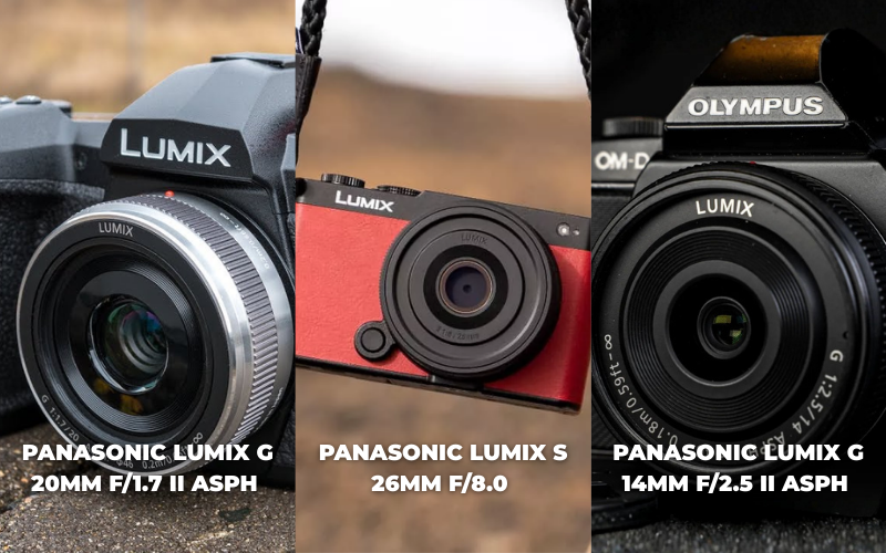 Se o usuário busca como prioridade o tamanho da lente, o sistema MFT (Micro Four Thirds) é imbatível. A Panasonic Lumix G 20mm f/1.7 II ASPH é um grande exemplo, virando referência entre os entusiastas: nítida, com abertura f/1.7, pesando apenas 87 gramas. A Lumix G 14mm f/2.5 II ASPH consegue ser ainda menor, com 55g e 20,5 mm, criando provavelmente o setup grande angular mais portátil de qualquer sistema intercambiável.
